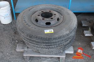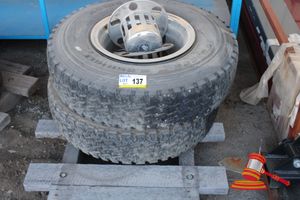 PAIR 8.25 R16 TYRES ON 6 STUD RIMS